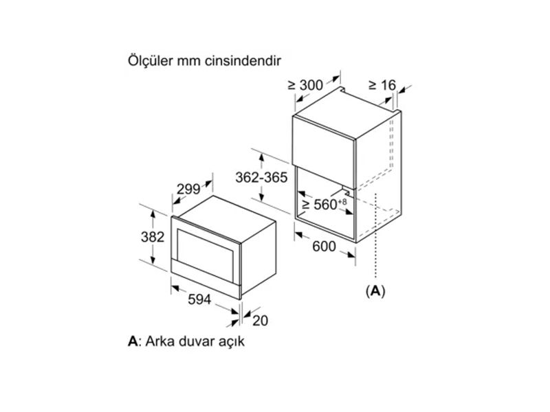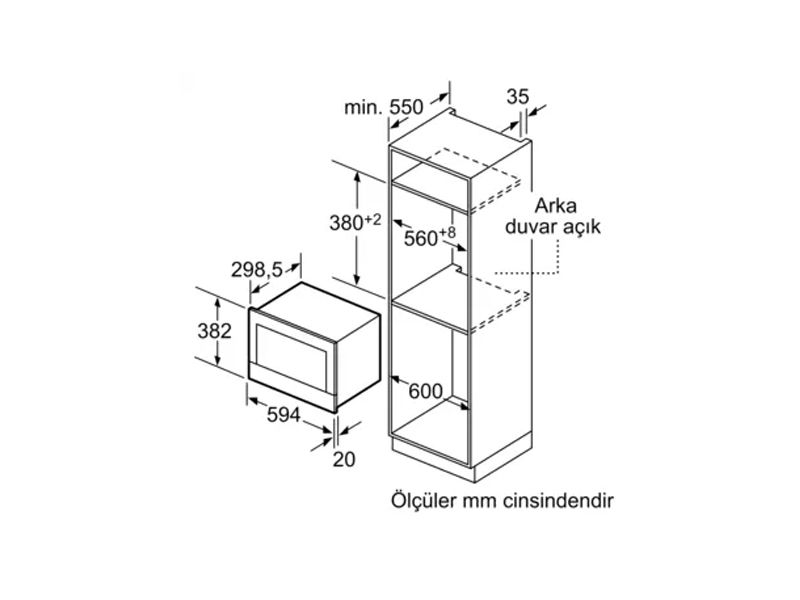 Montaj için min genişlik: 560 mm