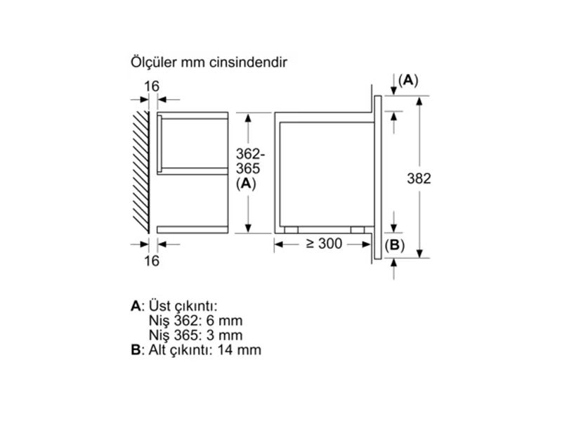 Montaj için min yükseklik: 362 mm